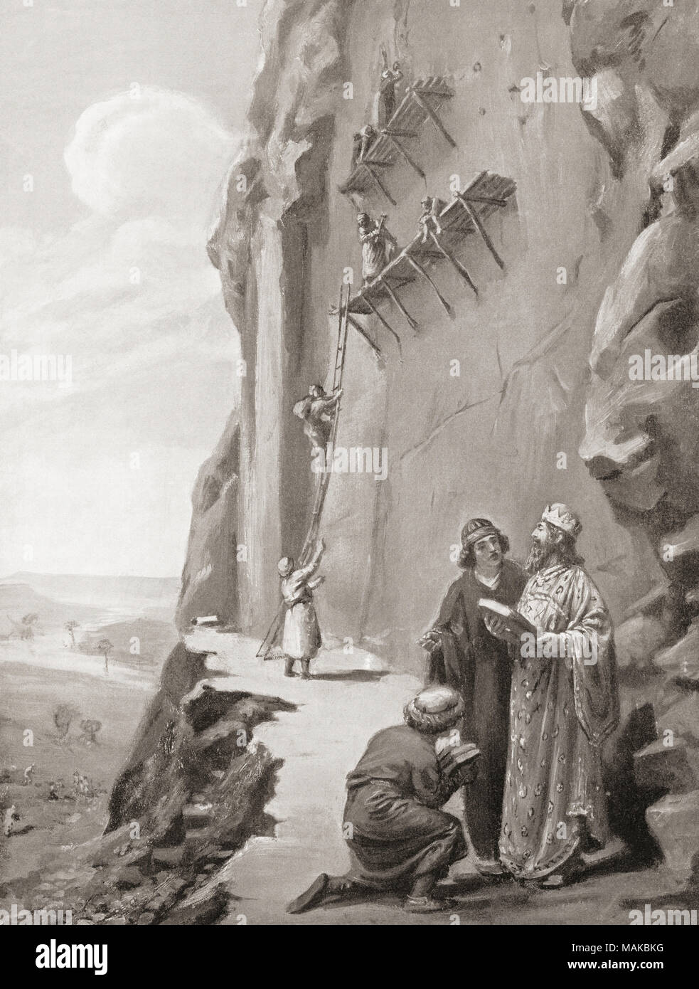 Darius I (548486 BC) Achaemenid king of Persia from 521, with attendants. Chromolithograph of